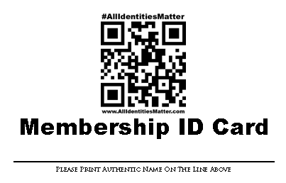 "All Identities Matter Authentic Name Membership ID Card" templete